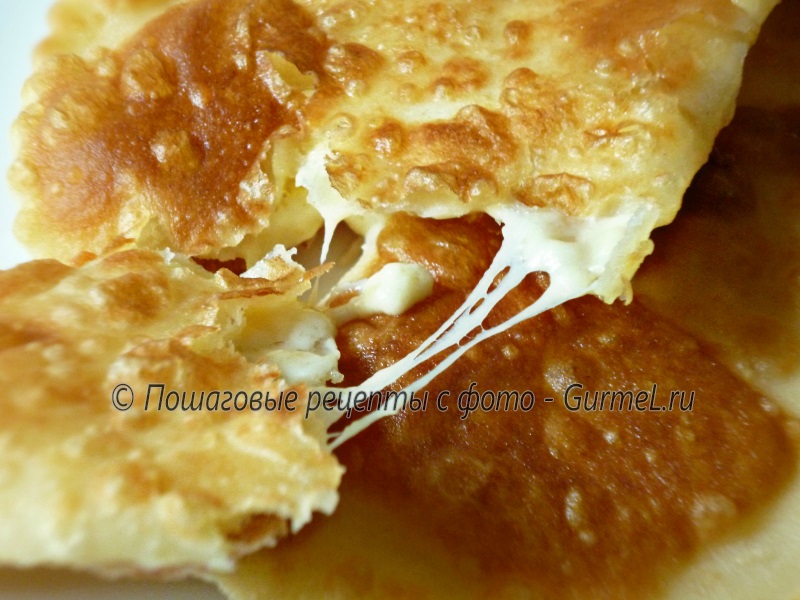 В отличии от чебуреков с мясом, сыр не требует особо сильного прогрева — зарумянились и сразу можно снимать, начинка-то не сырая.