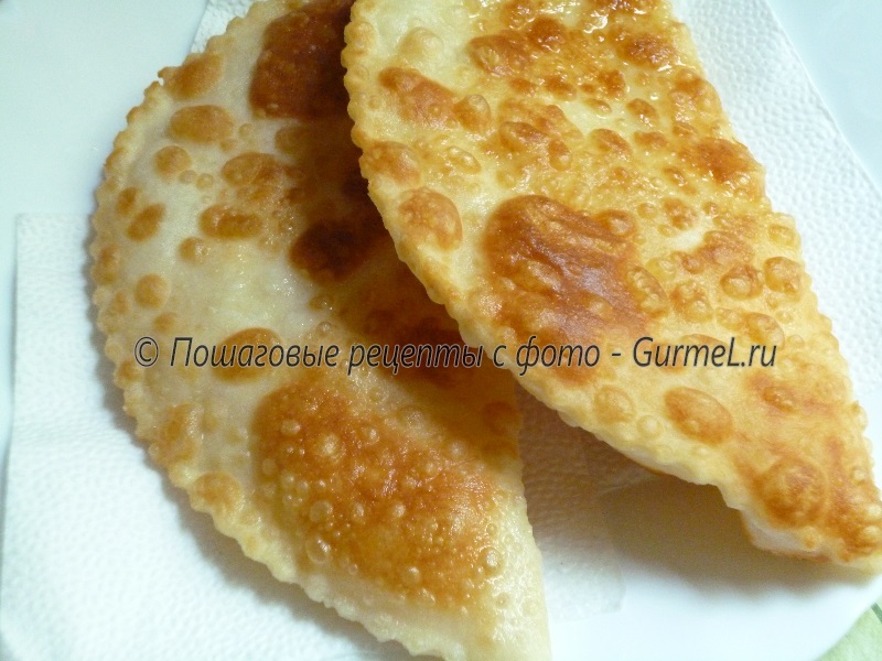 Готовые чебуреки выложить на бумажное полотенце, чтобы впиталось лишнее масло.