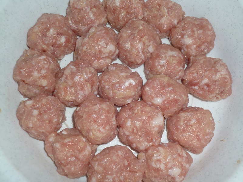 Разделать на фрикадельки размером с небольшой грецкий орех.