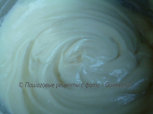 В горячий крем кладём сливочное масло, перемешиваем до однородности.